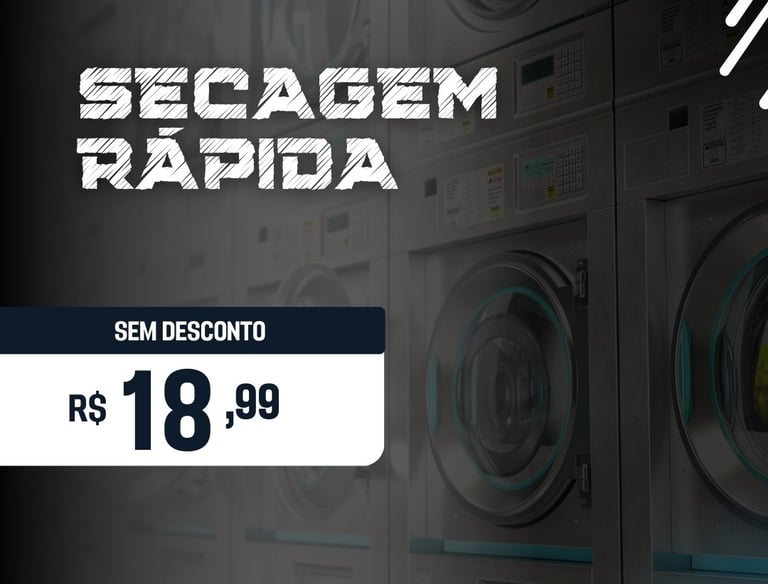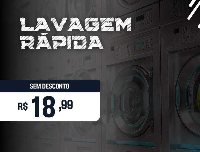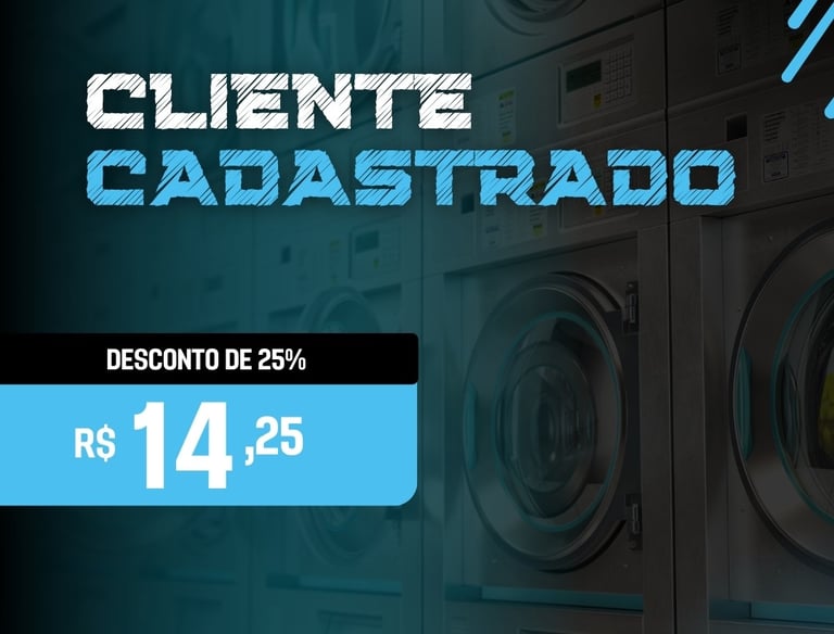 Lavagem ou secagem custam R$ 18,99, mas cadastrados pagam R$ 14,25. Fazer o cadastro é rápido e libera o desconto automaticamente. Você economiza hoje e sempre que voltar.